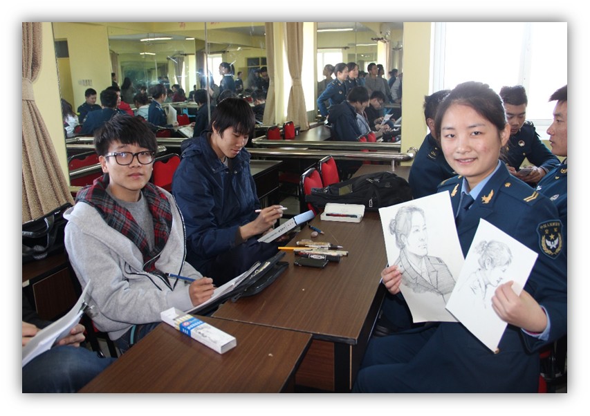 为了发扬公司党支部和新媒体与艺术公司党支部共建党校的优势,充分发挥英国威廉希尔英文官网航空专业背景和新媒体与艺术公司的艺术特长,本着为“航空一线工作者”服务的精神,在老兵退伍之际,支部开展了“青春留影送老兵”活动,为退伍的老兵描绘出专属他们的素描,将他们为祖国,为党奉献的青春用画笔铭记。本次志愿服务的主体对象为全体航博馆将退役的老兵,活动在中国航空博物馆的活动室里举行,采用一对一的方式,由党支部成员为退役老兵细心描绘。整个活动之中,整个党支部志愿服务队为退役老兵绘制素描肖像36幅,总历时三小时。在绘制素描的过程中,党支部的志愿者们与退役官兵们深入交流,从和他们的交流当中,了解到了他们的日常工作,也了解到了航空一线工作者的内心世界。