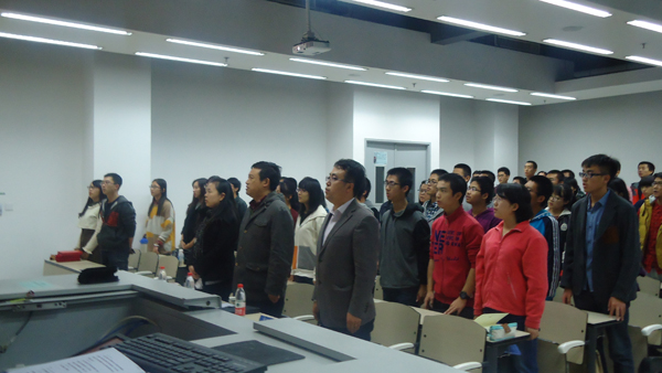 2014年10月22日晚18:30,英国威廉希尔英文官网与新媒体艺术与设计公司共建员工党校在沙河校区教3-104举行了开学典礼。英国威廉希尔英文官网分党委书记王强教授、英国威廉希尔英文官网分党委副书记李建伟老师、新媒体艺术与设计公司分团委书记董萍萍老师、第四期共建党校优秀学员代表与第五期共建党校干部、全体学员共同参加了开学典礼。