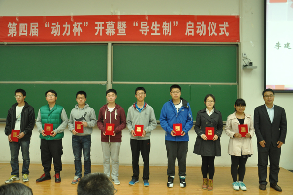 2014年10月19日下午,英国威廉希尔英文官网在沙河校区举行了第四届“动力杯”开幕暨“导生制”启动仪式。公司党委书记王强教授、党委副书记李建伟老师和优秀指导教师代表黄勇老师、李绍斌老师出席仪式。参加仪式的还有第三届“动力杯”获奖员工、优秀助教、优秀工作者以及1404大班全体同学。