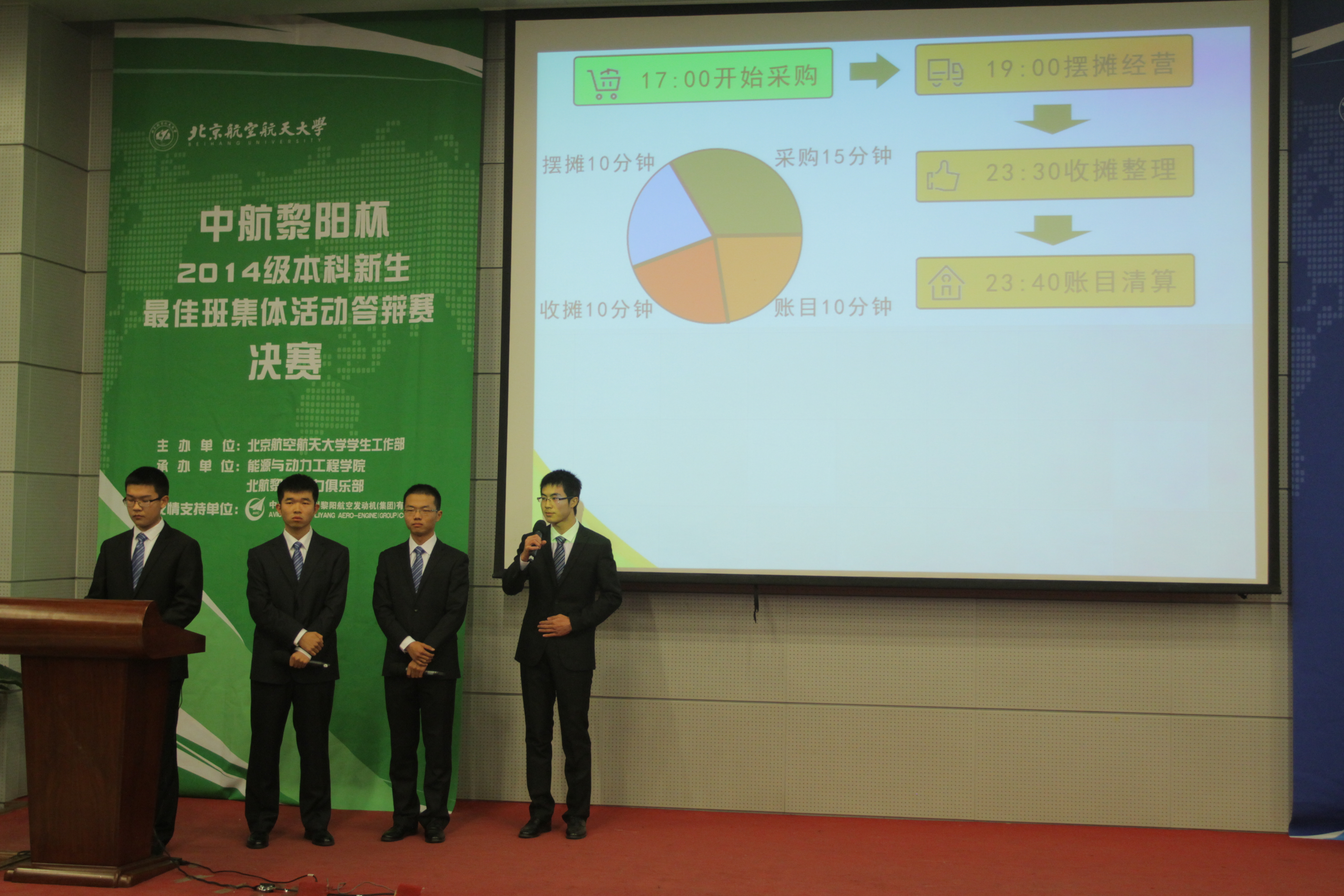 11月26日晚,14个晋级决赛的班级为给大家呈现了一场精彩的答辩赛。答辩赛上,“梦拓计划”mentor代表在展示前带来班级活动的推荐词,14个班级用不同的形式展示了自己的班级活动,并接受了评委老师的提问。他们的展示或热情洋溢,或严谨深刻,或温情脉脉。在有限的时间内,大家通过一个班集体活动向评委展示了自己班级的风采,充分诠释了“爱祖国、爱航空、爱航天、爱北航”这一活动主题。