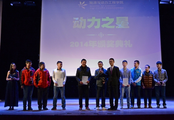 中航工业燃气涡轮研究院人力资源部陈晓春主管和北京全四维动力公司徐克鹏总工程师分别为624所奖学金、四维动力奖学金的获得者颁奖,并表示企业将不断支持推动公司科技创新的发展,与公司一同实习强国动力梦。最后,全院师生共同回顾了公司本科生2013-2014年取得的各类荣誉,典礼在由获奖员工代表深情合唱的歌曲《You Raise Me Up》中圆满落下帷幕。