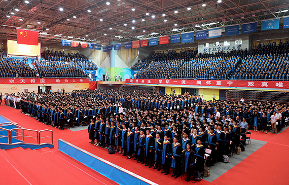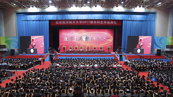 典礼上,全体毕业生用一次次雷鸣般的掌声表达了他们对母校的眷恋和对未来的信心。全体2017届本科毕业生高唱校歌《仰望星空》,优美激昂的旋律在北航校园上空久久回荡。