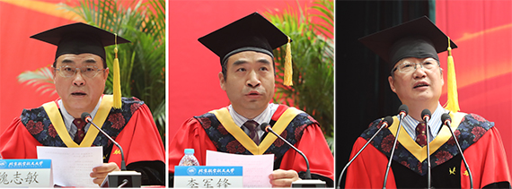 党委书记张军院士为毕业生代表颁发毕业证书和学位证书,董事长徐惠彬院士为毕业生代表授予学位。