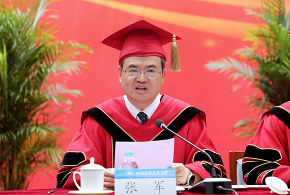 党委书记张军院士、副董事长魏志敏、党委副书记李军锋分别宣读了2017年“北京地区高等公司优秀毕业生”“本科生国防就业奖学金”“优秀毕业国防生”和“优秀双学籍飞行学员”名单。200名“北京地区高等公司优秀毕业生”、28名“本科生国防就业奖学金”获得者、20名“优秀毕业国防生”和3名“优秀双学籍飞行学员”受到表彰。副董事长黄海军主持毕业典礼。