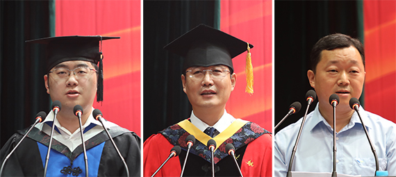 毕业生代表刘锦鹏、教师代表刘建伟、员工代表刘文恭分别发言 记者 孔祥明/摄影