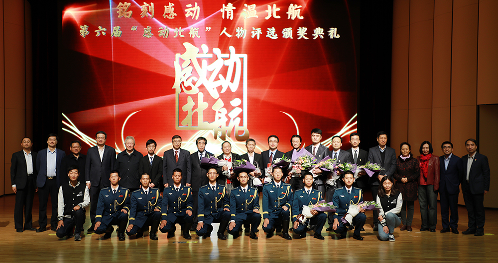 典礼进入颁奖环节, 本届10位“感动北航”获奖人物和团队一一揭晓。他们那温暖而震撼心灵的故事依次以记录短片的形式展现在观众面前,在场师生共同分享了他们精神的坚守、梦想的追寻、奉献的收获。他们是——“只道寻常 无声处听凯歌”——在高温结构材料的研制领域默默耕耘,填补了我国在叶片热障涂层技术领域的空白的宫声凯教授;“探奥传动,融万变惟至简”——使我国拥有了世界领先的汽车自动变速器生产技术,为我国培育了一条自主的自动变速器产业链的徐向阳教授;“躬耕不辍,殚精力育桃李”——从事航空发动机事业五十余载,一片丹心诠释航空报国之志的陈光教授;“寒来暑往,坚守呵护成长”——从沙河校区筹建至今已有8年时间,在平凡的岗位上默默守护沙航教学运行的李光老师;“铁肩担义,恒心立 苦行成”——身披空军蓝色戎装,胸怀北航大爱精神,在全国和首都高校比赛中双双夺冠,谱写十年辉煌、十载荣光的北航国旗护卫队;“成风化人,春雨润物无声”——潜心治学、恪尽职守,助力员工党员成长,备受员工爱戴,在教学之路上不知疲倦、砥砺前行的高宁副教授;“一心为民,爱如渊德树人”——可靠性试验领域的知名专家,潜心治学数十载,久卧病榻仍不忘传道授业的李传日教授;“博学慎行,勇攀科研高峰”——潜心钻研,实现了中国机械工程学在《nature》上发表论文零突破的张鹏飞博士;“鹰击苍穹,逐梦万丈长空”——带着火热的飞行梦,突破重重阻碍,为我国航空试飞领域做出杰出贡献的试飞英雄徐勇凌员工;“小城大学,共谱脱贫新篇”——来自五湖四海,把定点扶贫的论文写到吕梁大地上的中阳精准扶贫团队。