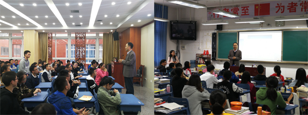 在绵阳市期间,马进喜处长等一行参加四川省绵阳中学60周年校庆大会。马进喜处长以《北航-梦想启航的地方》为题向高一高二同学们献上了一场生动有趣的宣讲报告,通过多个鲜活的事例展示出了充满活力与前景的北航,充分调动了同学们对北航的兴趣和热情,反响热烈。马进喜处长、方志副书记与高三同学近距离交流互动。