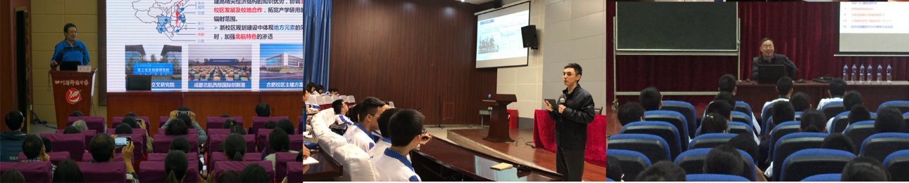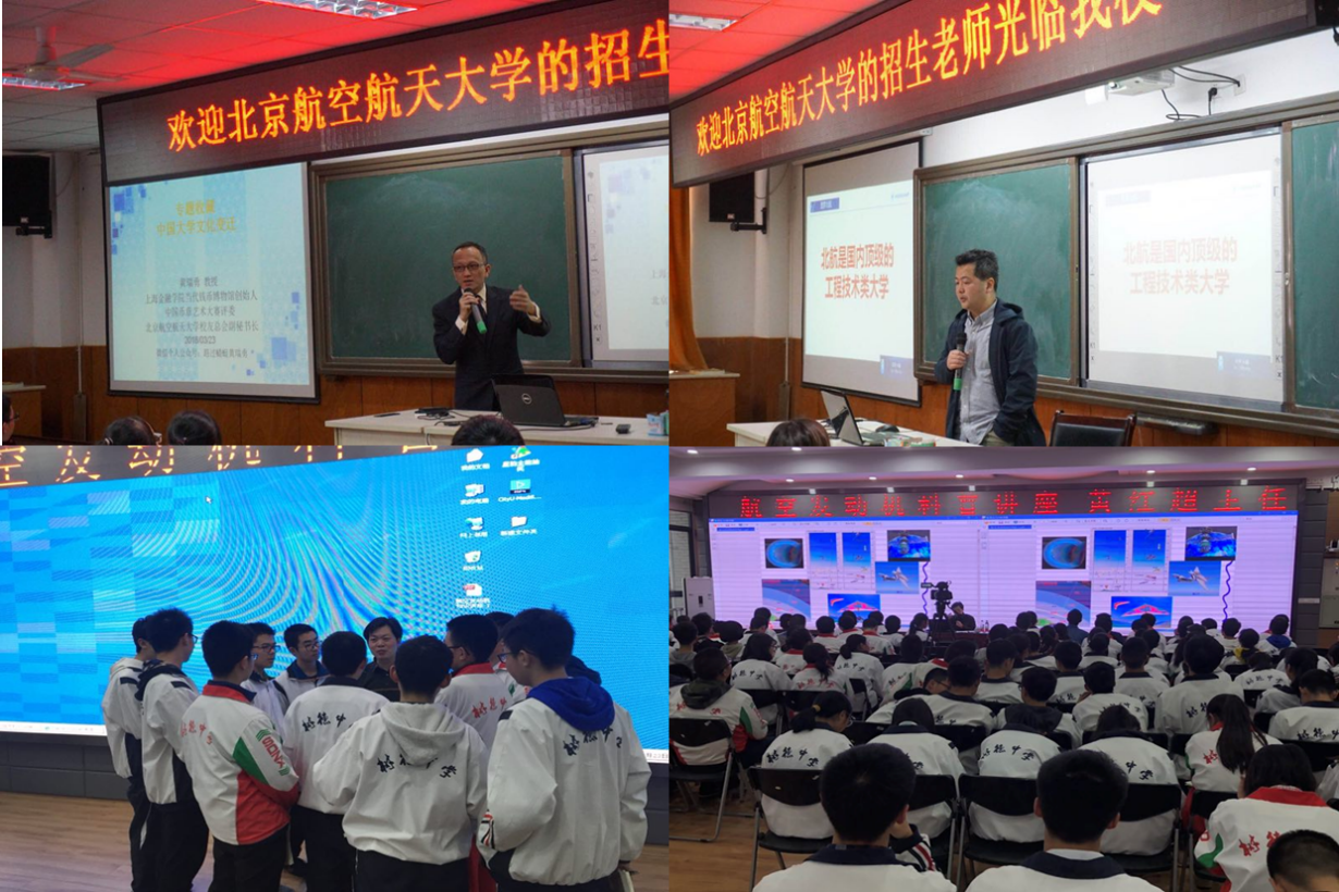 联合北航员工会和北航四川员工会组成员工宣讲团进四川重点中学。3月23日,在成都市铁路中学,北航员工总会副秘书长、上海金融公司融理当代金银币文化研究所所长黄瑞勇作题为《中国大学文化和北航》讲座,结合自身艺术品和钱币的兴趣爱好,以收藏品-纪念章为切入点,讲述北航的故事。北航四川员工会副会长、成都市矽谷产业加速器科技有限公司董事长李辉作题为《北航与成长》讲座,结合自身的经历,详细的介绍了北航的历史、学习与生活、发展与展望。在成都树德中学,中国航发四川燃气涡轮研究院总体性能研究室主任黄红超研究员作《航空发动机知识讲座》,从简单的航空知识出发,由浅入深讲解航空发动机原理;讲座后,黄主任与同学们交流航空发动机相关问题。除此之外,北航四川招生副组长、公司党委副书记方志作招生宣传讲座。