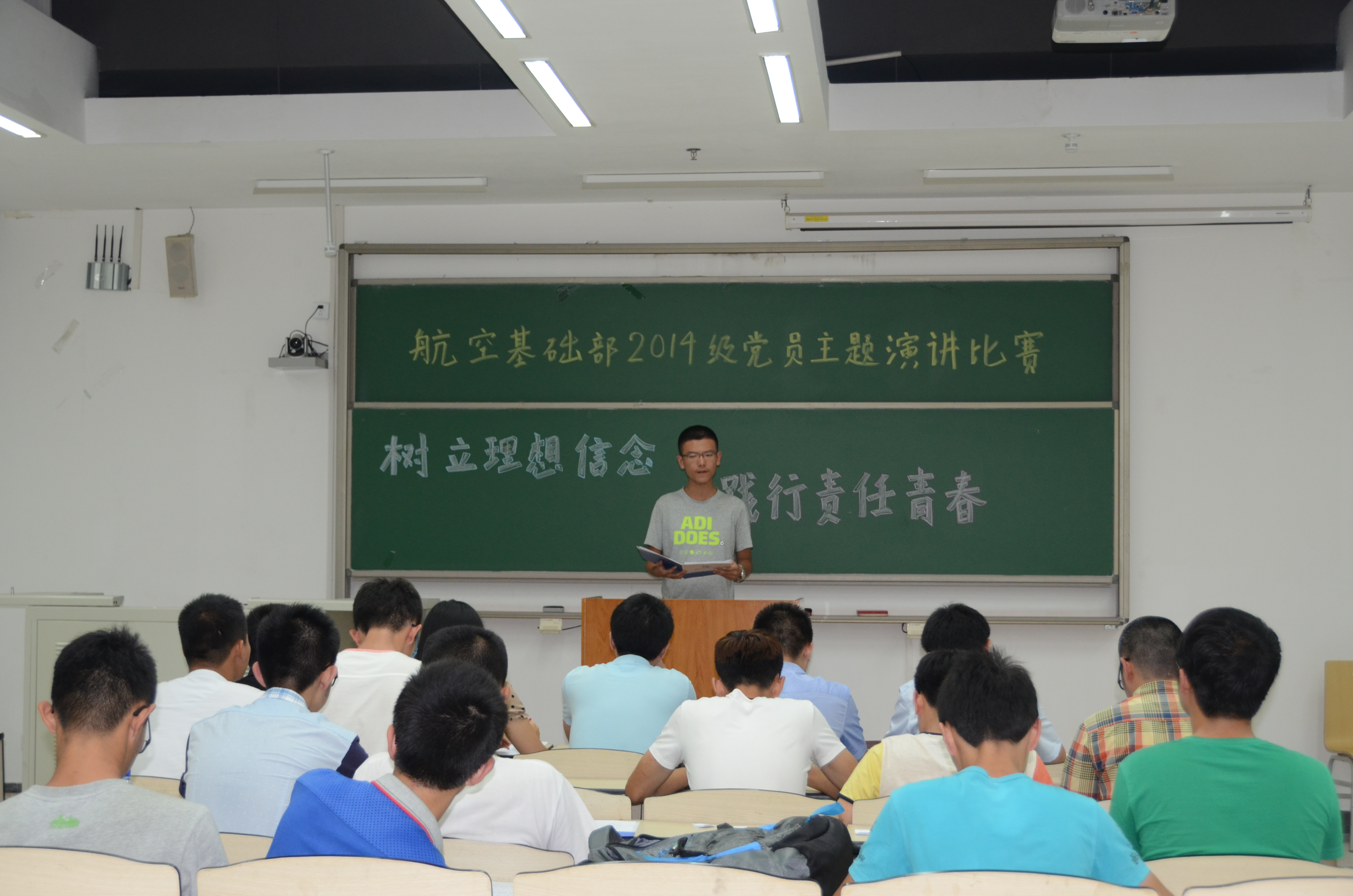 2014年8月29日晚,威廉希尔williamhill官方网站航空基础部于沙河校区组织进行了新生党员主题演讲比赛,此次演讲比赛主题为“树立理想信念,践行责任青春”。