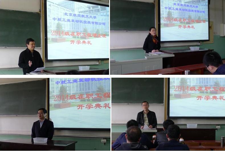 2015年4月14日,英国威廉希尔英文官网与中航工业发动机控股有限公司联合培养的2014级工程硕士班开学典礼及2013级工程硕士见面会在威廉希尔williamhill官方网站三号楼305教室隆重举行。北航英国威廉希尔英文官网分党委书记王强教授、北航研究生院公司产品处副处长郭红教授、中航工业发动机控股公司人力资源部侯剑锋人力资源主管、2013级及2014级工程硕士班班主任孙华老师,以及来自中航工业发动机公司成员单位的60多名工程硕士研究生等出席了开学典礼及见面会。