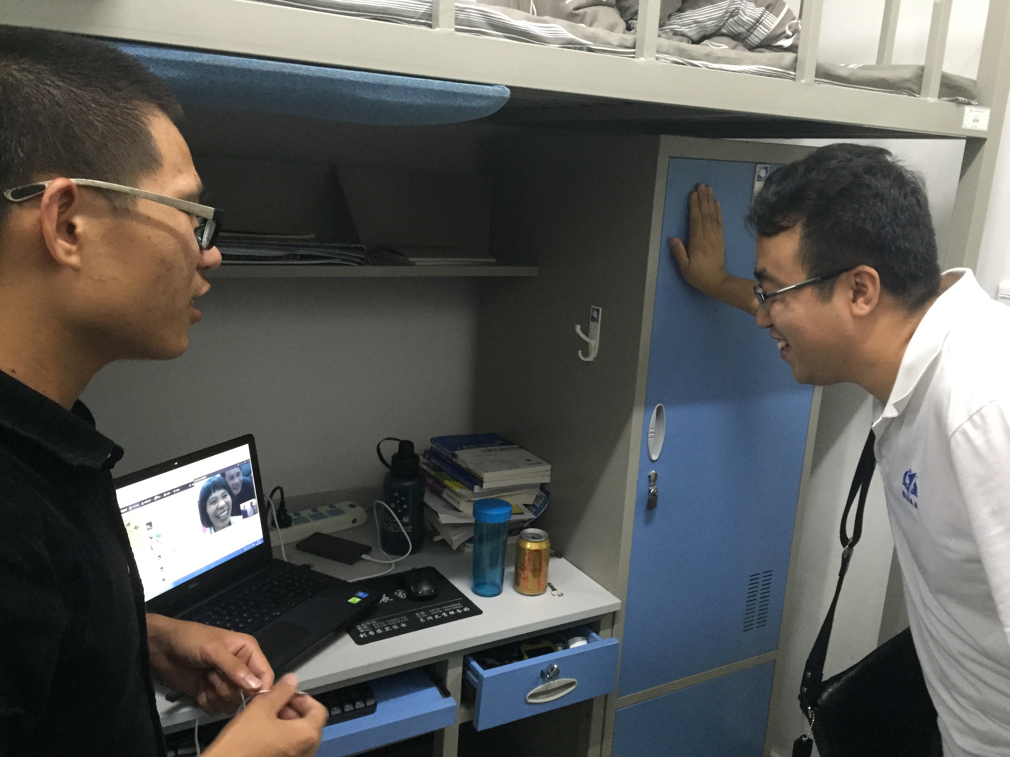 公司党委副书记李建伟老师、分团委书记方志老师等一行来到员工宿舍,在宿舍内与2015级新生亲切交谈,仔细询问同学们目前的生活状态,是否适应老员工活,在生活上和学习上是否遇到困难,衣服床铺是否暖和,是否拿到公司发放的月饼和饮料等。李建伟老师叮嘱同学们天气转冷多加衣服、添厚被,也提醒同学们要经常主动给家里打电话问候交流,让父母放心。当看到有同学在和父母视频聊天时,李建伟老师和员工家长进行了交谈,简要交流了员工情况,请家长放心,同时代表公司对家长致以节日问候。