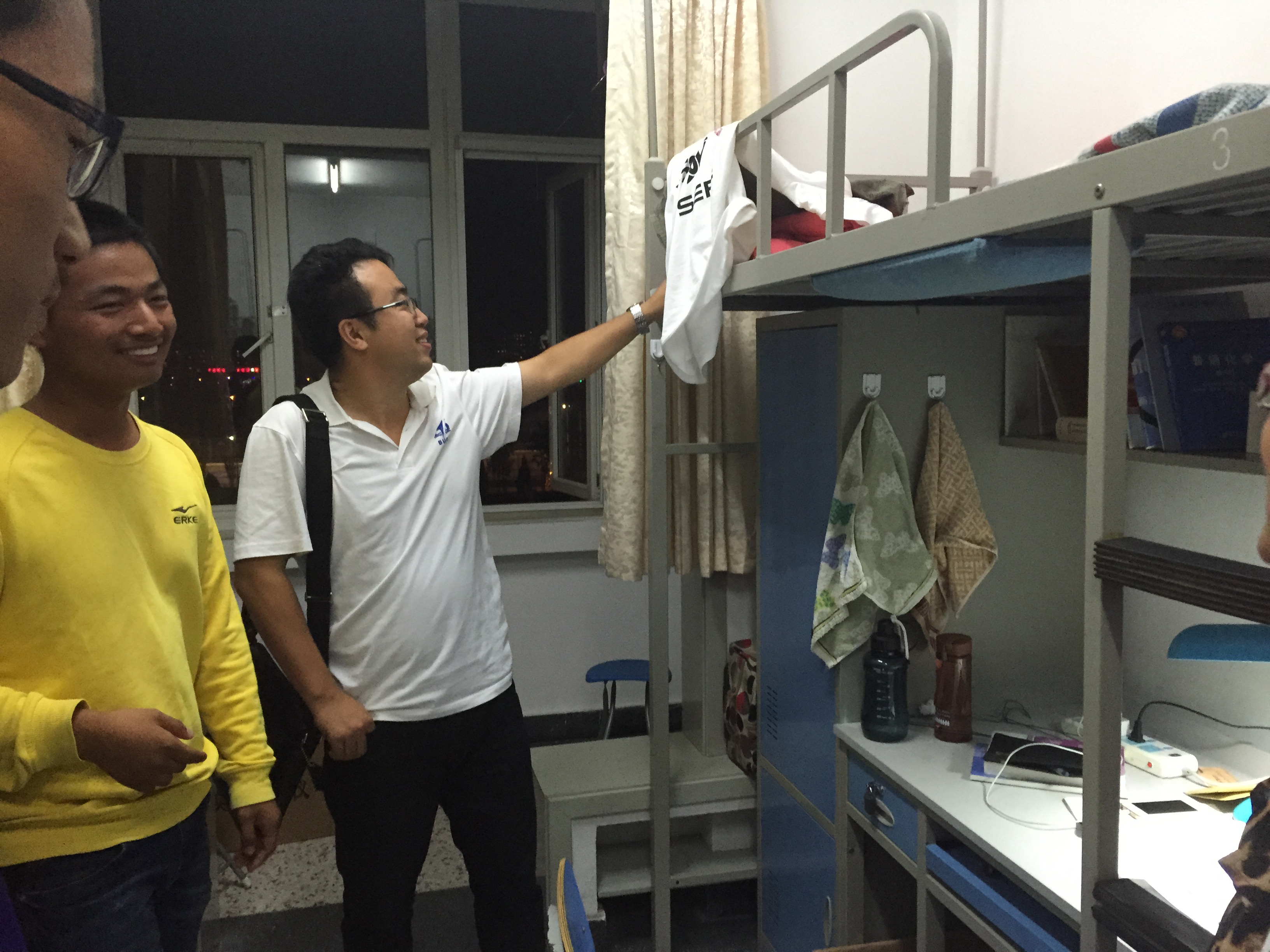 9月26日晚,公司党委副书记李建伟老师、分团委书记方志老师代表英国威廉希尔英文官网丁水汀经理、王强书记到沙河校区走访宿舍看望2015级新生,并发放中秋慰问品。