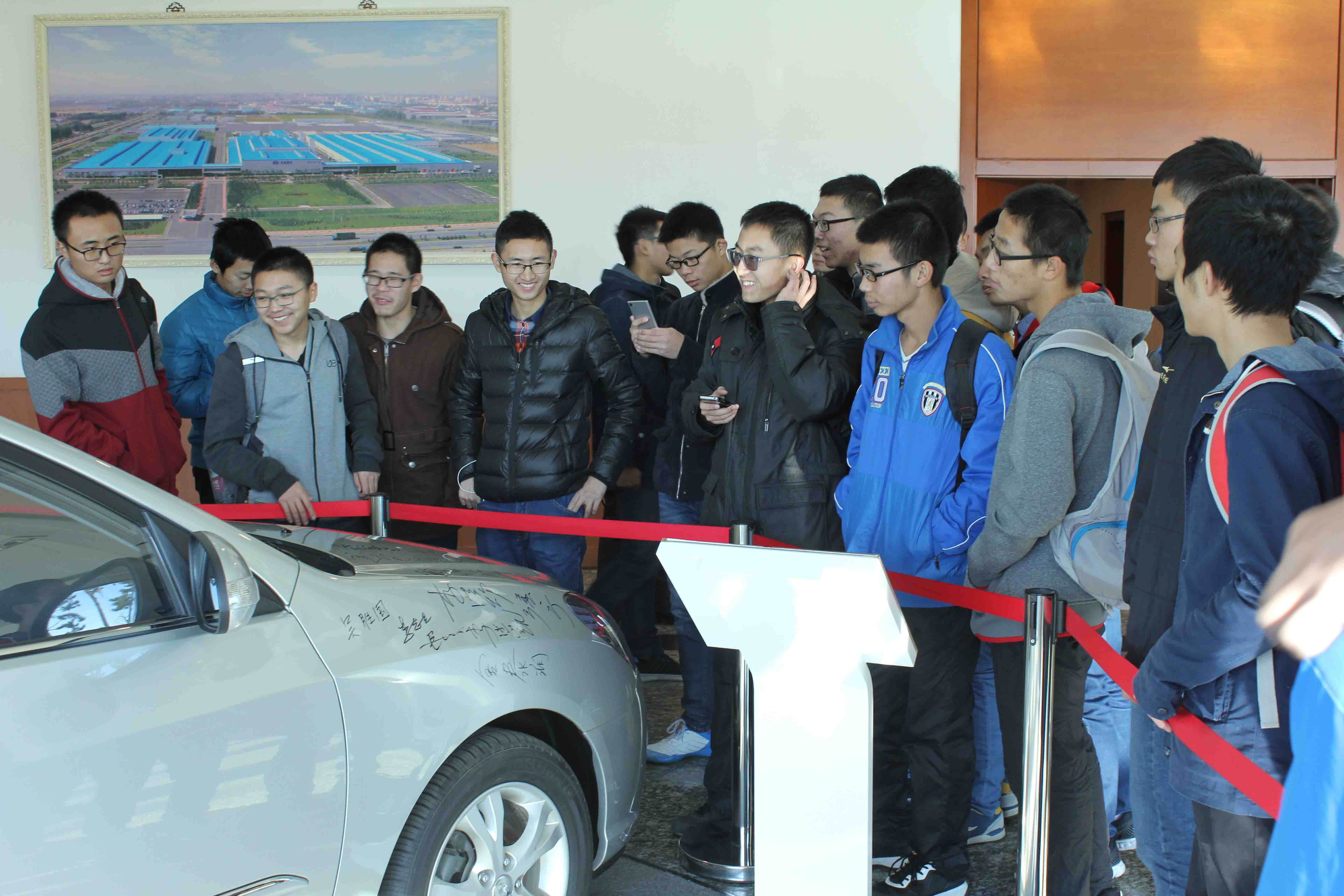 在抵达后,同学们受到了工作人员的热情接待。工作人员首先为同学们放映了北京现代公司的宣传片和汽车设计制造揭秘记录片。从宣传片中同学们了解到,北京现代汽车有限公司最初由中韩两国合资建成,在短短几年时间内就先后突破了100万辆、200万辆的生产大关,领略到了北京现代在企业管理和市场营销上的成功。通过汽车设计制造的纪录片,同学们整体了解了一辆汽车从卷形钢板到整车的制作过程。纪录片以现代汽车工厂为依托,为同学们详细介绍了汽车生产的冲压、焊接、涂装、总装四个工艺过程。