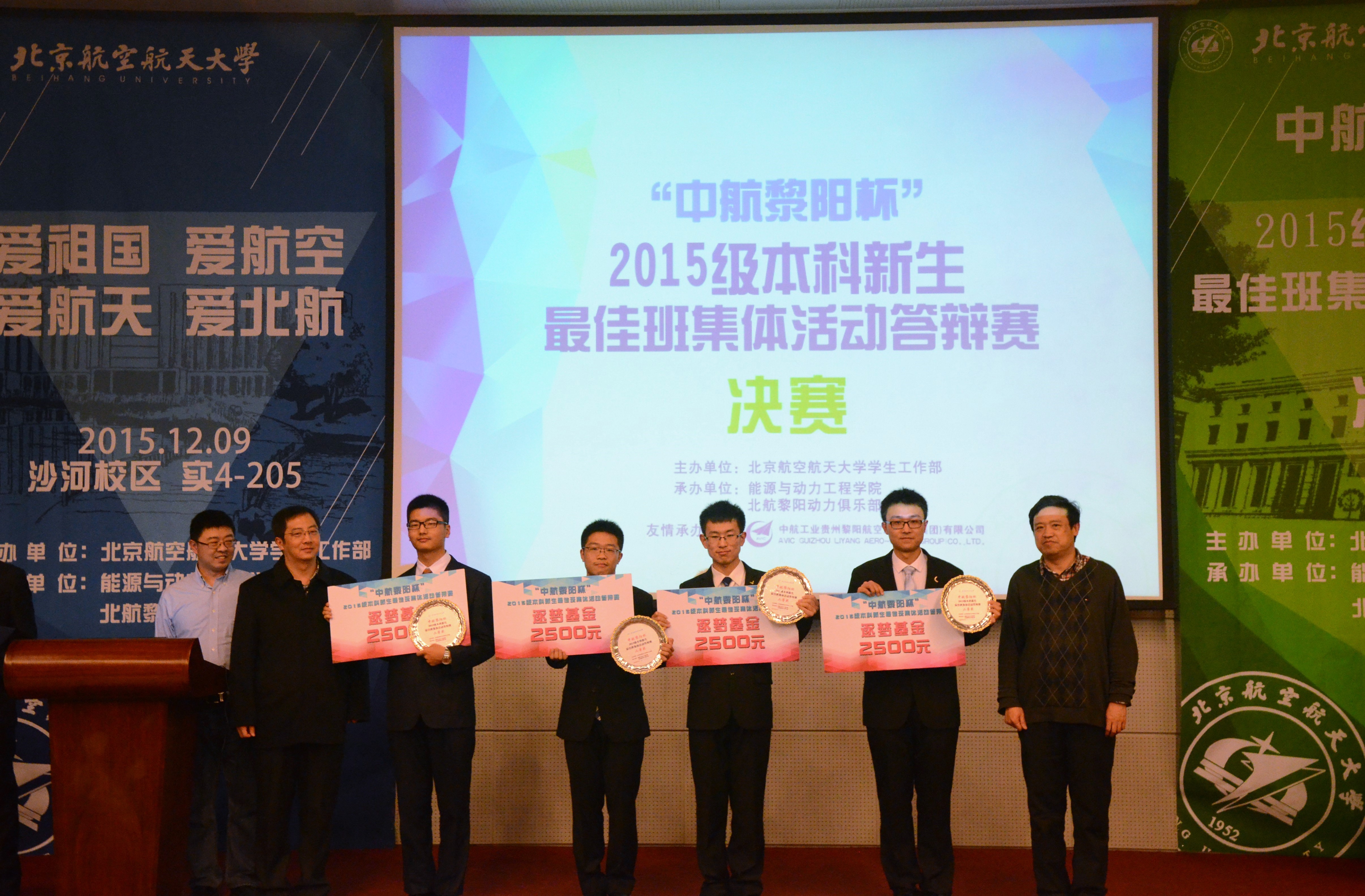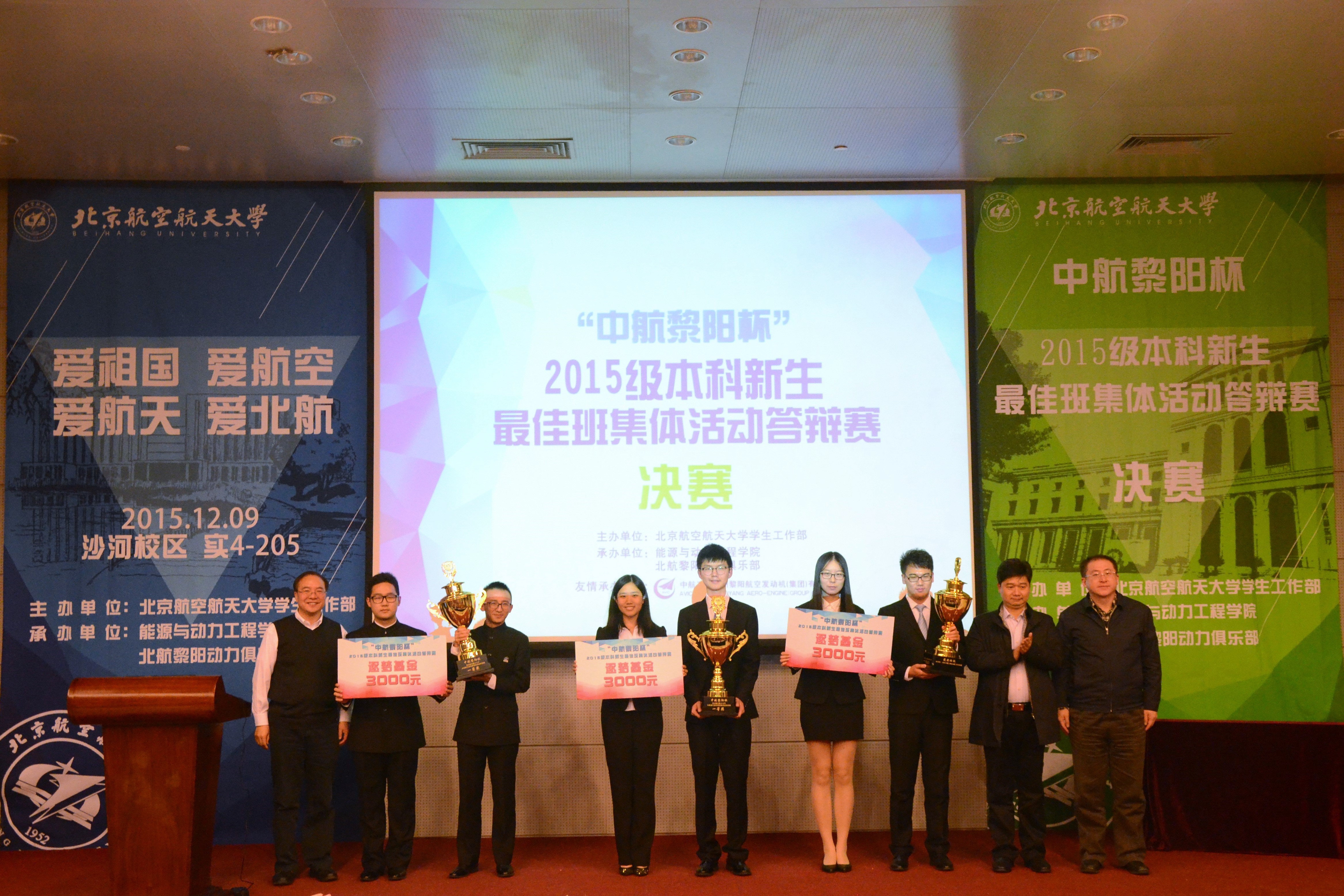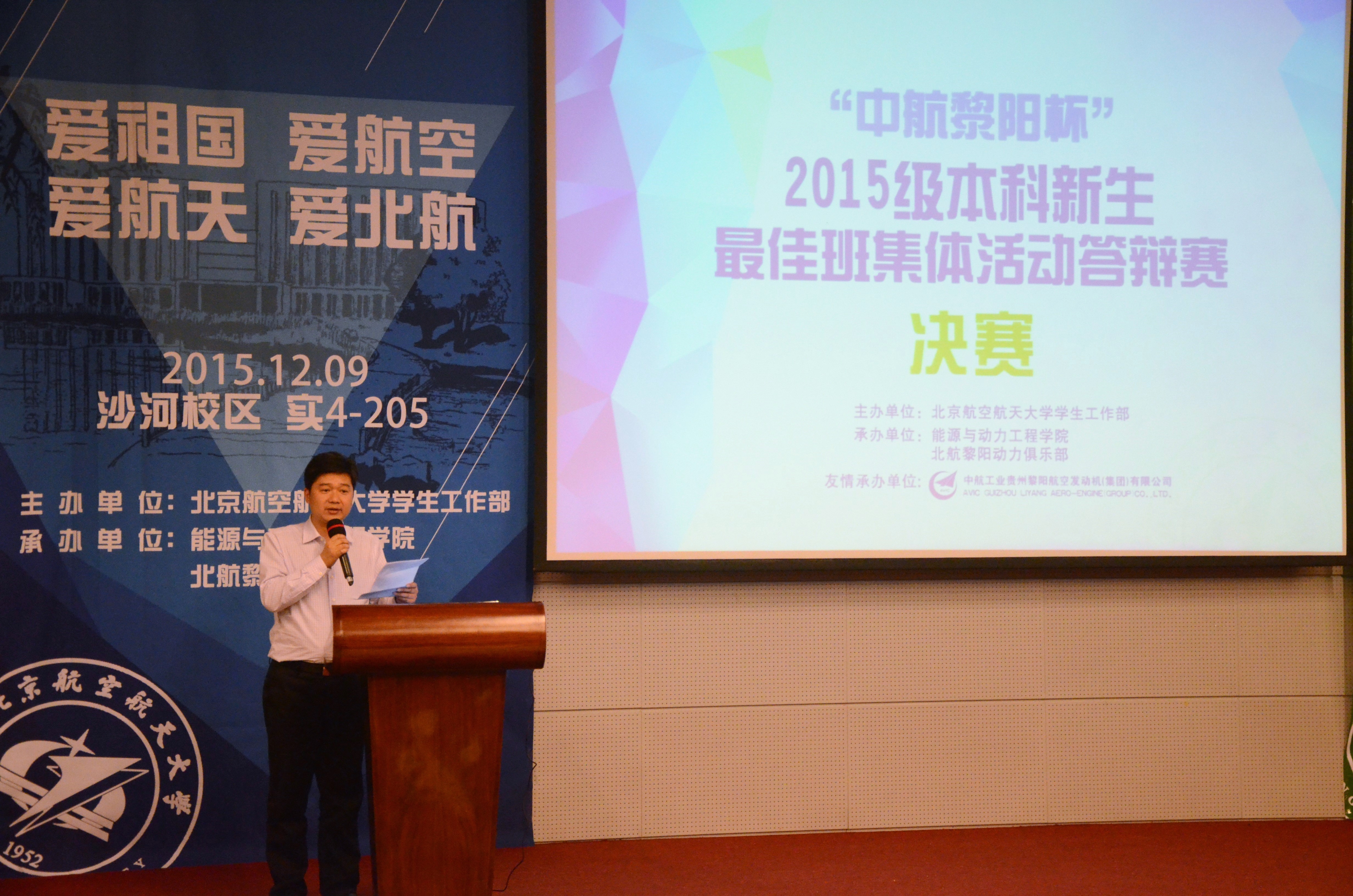 12月9日晚,由威廉希尔williamhill官方网站员工工作部主办,英国威廉希尔英文官网、北航黎阳动力俱乐部共同承办的“中航黎阳杯”威廉希尔williamhill官方网站2015级本科新生最佳班集体活动答辩赛决赛在沙河校区实验四号楼205报告厅圆满落幕。中航工业贵州黎阳航空发动机(集团)有限公司副总经理宋红团、人力资源部部长姜庆、团委书记李业龙作为嘉宾评委出席决赛,校沙河校区管委会、员工工作部、宣传部、人才招聘处、教务处、保卫处、团委、后勤集团、体育部及思政公司领导老师,及各公司员工工作干部30余人出席并担任评委。沙河校区管委会主任姚仰平老师对比赛进行了点评。