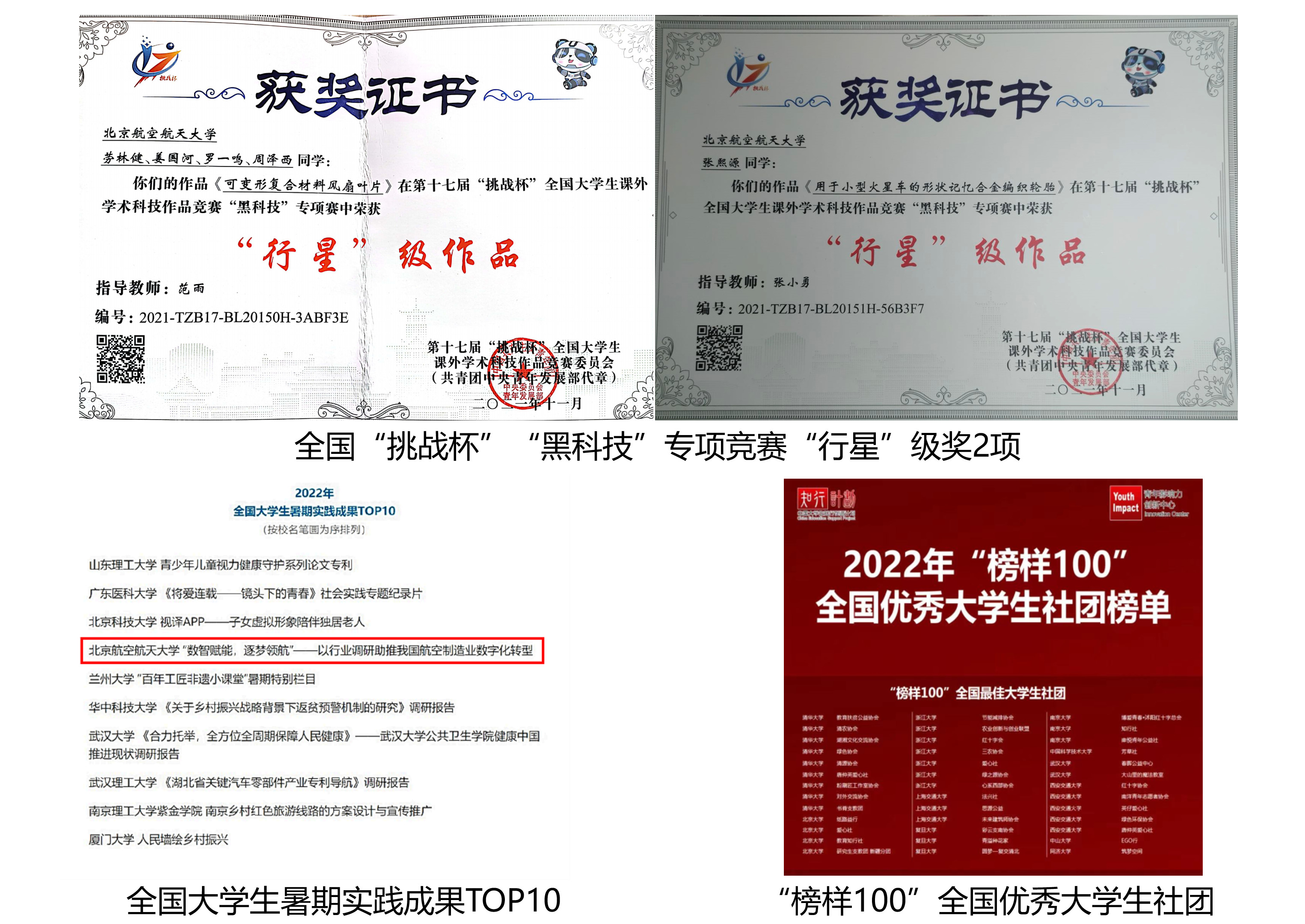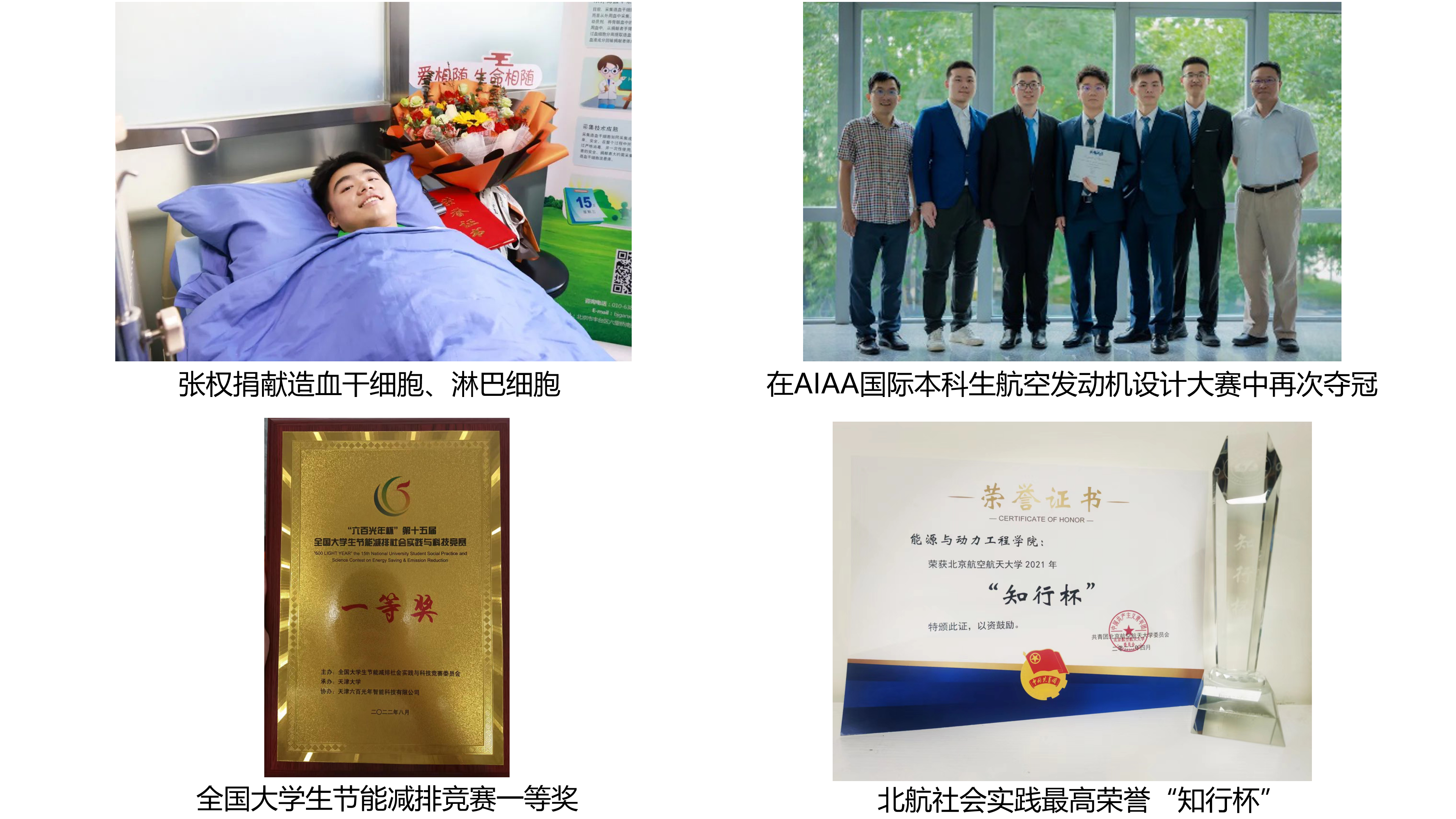 公司学子在2022年奋发有为,获得校内外多项荣誉。博士生张权一年内两次无私捐献造血干细胞、淋巴细胞,获“北航榜样——老员工年度人物”见义勇为之星。范永升博士学位论文入选北京市优秀博士论文。员工团队在国际AIAA本科生航空发动机设计大赛中再次获得冠军。公司学子获全国老员工节能减排竞赛一等奖,全国“挑战杯”“黑科技”专项竞赛“行星”级奖2项,“互联网+”老员工创新创业大赛“青年红色筑梦之旅”赛道二等奖,北航研究生优秀科技创新团队奖学金。心起点实践队获“全国老员工暑期实践成果TOP10”、“青年服务国家”首都大中专员工社会实践优秀团队,实践社获“榜样100”全国优秀老员工社团。公司获北航社会实践最高荣誉“知行杯”。1个党支部获北航优秀主题党日活动,4个党支部获北航党支部创新基金。180441班获北京市先进班集体、“先锋杯”活力团支部,190441班获北航“十佳班集体”、标兵团支部,200441班获北航活力团支部。公司获校“航篮杯”沙河校区冠军、校飞盘联赛沙河校区冠军、校运会研究生团体第1名。