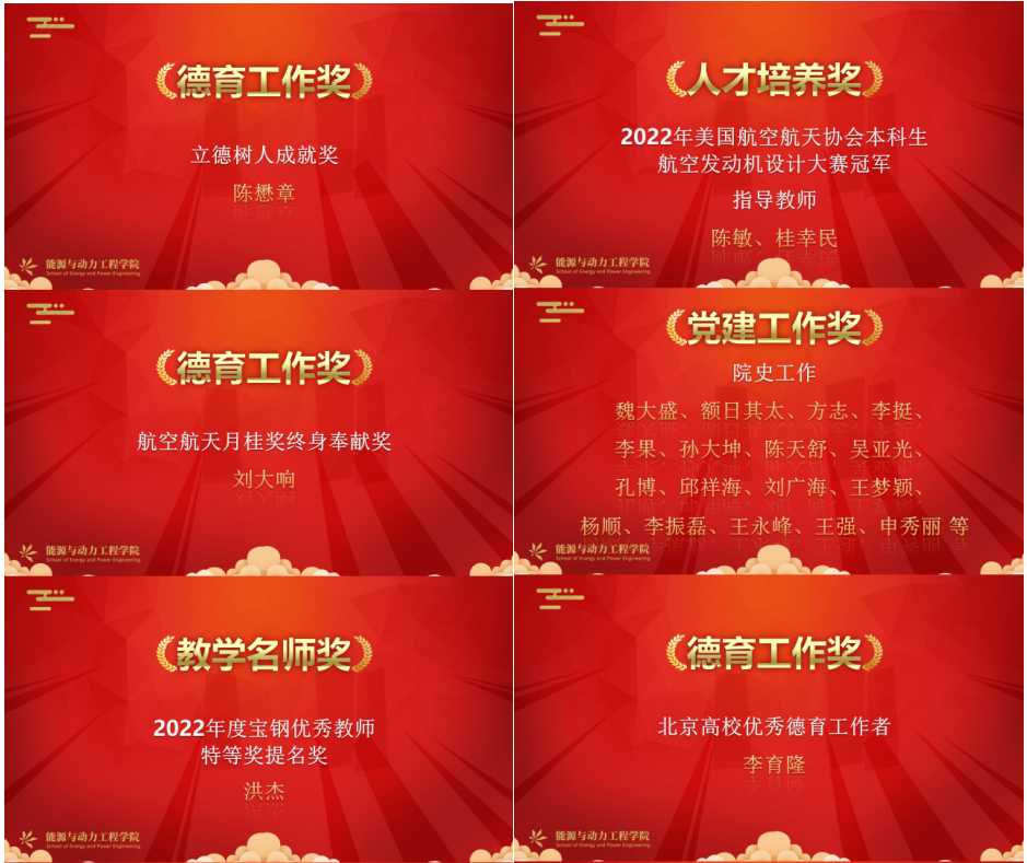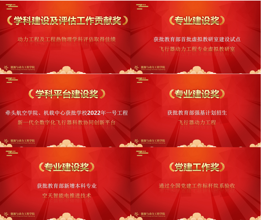 2022年是极不平凡的一年,党的二十大胜利召开,北航迎来70周年华诞,英国威廉希尔英文官网也庆祝了70岁生日。在这一年,疫情形势一波三折,全体教职员工团结一心,勇敢面对,克服了重重困难,最大限度保障了日常教学科研工作,在团队建设、人才培养、科学研究、团队队伍建设、党的建设等各项工作中取得了一系列丰硕成果。团队建设方面,动力工程及工程热物理在学科评估中取得佳绩;专业建设方面,获批教育部“飞行器动力工程专业”首批虚拟教研室,获批教育部“飞行器动力工程”强基计划,获批教育部新增本科专业“空天智能电推进技术”;平台建设方面,由英国威廉希尔英文官网牵头,联合航空公司、机载中心获批公司首批“新一代全数字化飞行器”科教协同创新平台;党建工作方面,顺利通过“全国党建工作标杆院系”验收。