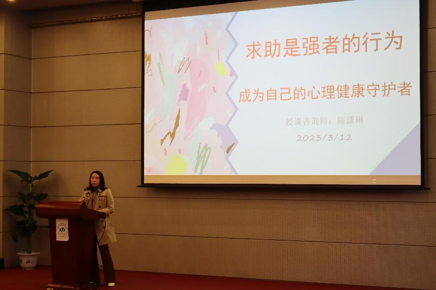 接下来,陈潇琳老师对一些常见的心理状态进行了详细的描述,帮助同学们对自己生活中不知不觉产生的情绪状态有了初步的认识。陈潇琳老师解释,心理咨询分为障碍性咨询和发展性咨询,无论哪一种形式,都是我们在感受到自己的负面或消极影响之后积极寻求帮助,积极改变自我状态的方式,这在本质上是我们“自我反思和自我解救”的一个过程,这恰恰说明我们拥有着开放的姿态和自我反思的心智能力。陈潇琳老师的讲解帮助同学们意识到自己的思想误区,以便及时纠正对心理咨询的微弱“歧视”的看待方式。
