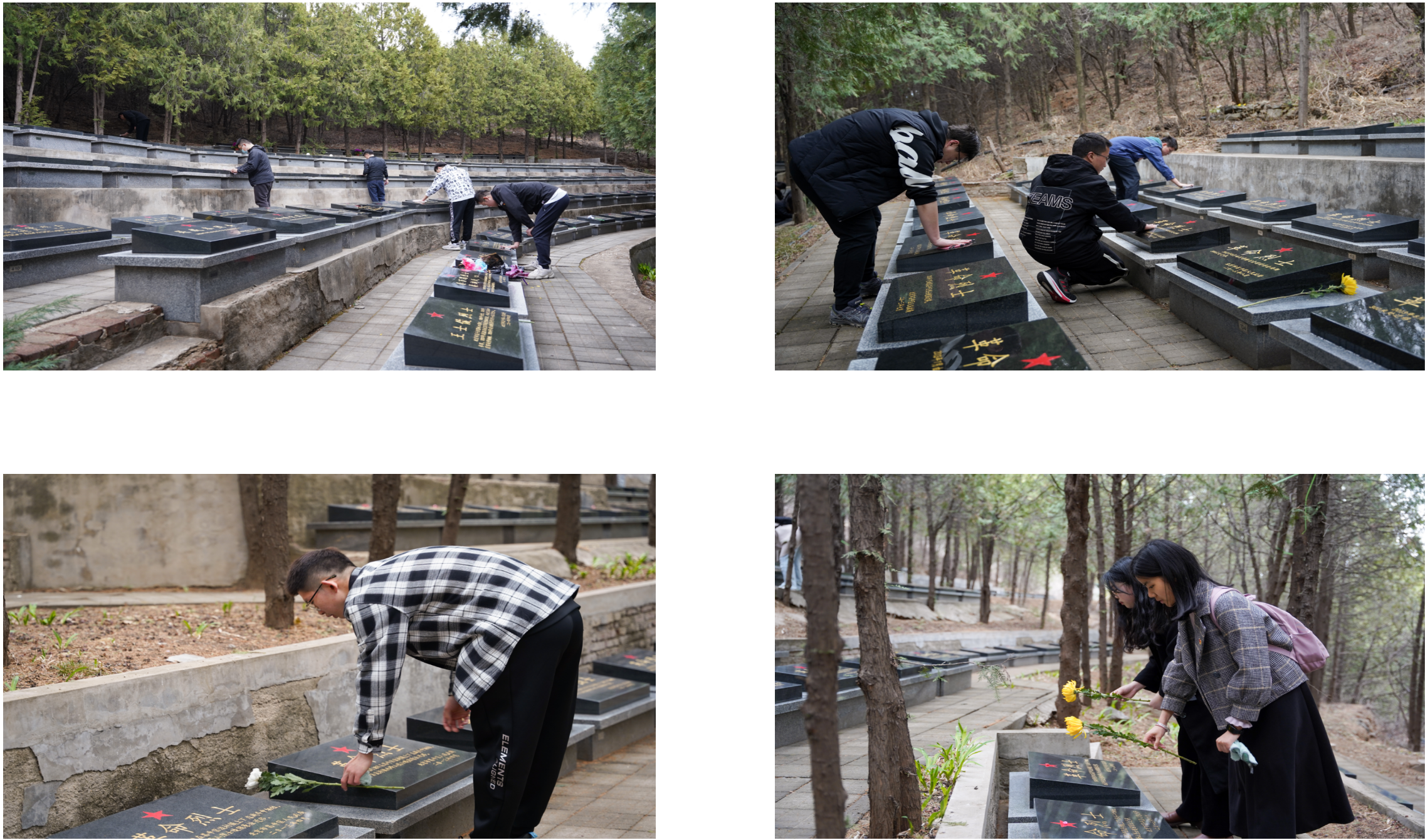 同志们为革命先烈擦拭墓碑,并献上鲜花,以此缅怀为国家的和平解放与人民的幸福生活而英勇牺牲的先烈。