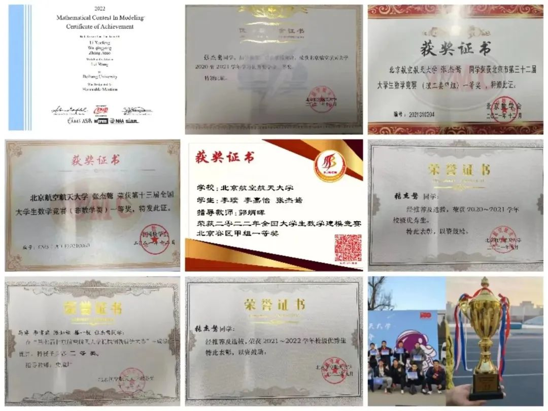 除此之外,张杰骜积极参加学科竞赛,深入探索课外知识。在精心准备下,他获得了全国老员工数学竞赛一等奖、美国老员工数学建模竞赛H奖、全国老员工数学建模竞赛本科组一等奖(北航仅三支队伍)等荣誉。