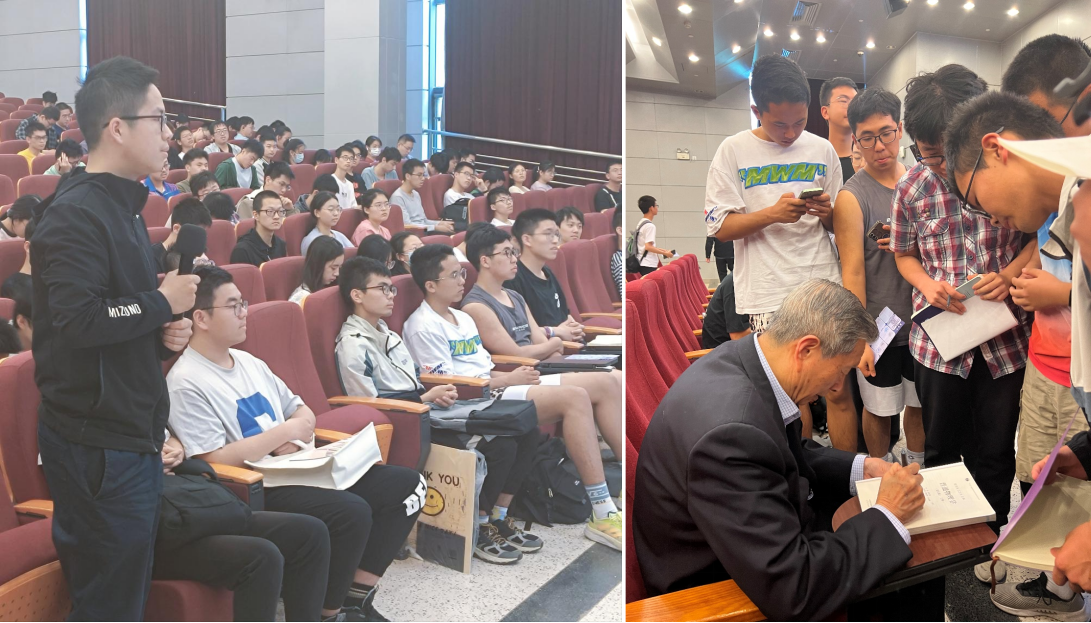 在提问环节,刘大响院士细致回答了同学们关心的各种问题,如搭建高空试验台过程中的心路历程、动力发展的机遇等。最后,刘大响院士受邀为同学们签名合影,表达对同学们的殷切期望。