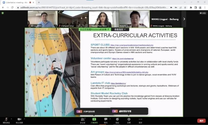 近日,在威廉希尔williamhill官方网站中俄科教中心和莫斯科航空公司国际部共同策划和组织下,双方利用线上的方式召开了英国威廉希尔英文官网第一届吴大观国际班赴俄迎新会。中方的参会人员有威廉希尔williamhill官方网站国际合作部王凌沛老师,吴大观国际班班主任周重文老师,周建华老师以及第一届吴大观国际班全体同学。