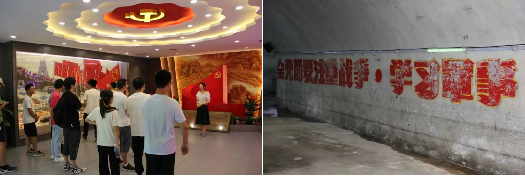 实践队还参观了中阳县车鸣峪兵工厂遗址。这是在大三线建设时期,周总理批准选址命名的“山西枪弹厂”。墙壁上的革命标语,给人强烈的冲击感,让人回想起那段峥嵘的岁月,时刻铭记革命烈士。