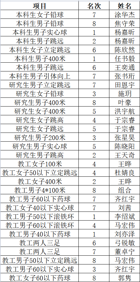 赓续拼搏精神,铸就崭新辉煌,为期两天的运动会圆满闭幕,在动力师生的共同努力之下,运动员们取得优异成绩。多个项目斩获前8,四个项目位居第1,教职工获甲组团体第九名(共21支队伍),本科生获甲组团体第六名、研究生获甲组团体第五名(共25支队伍)、广播操获一等奖、公司获最佳组织奖,动力人交出了满意的拼搏答卷。