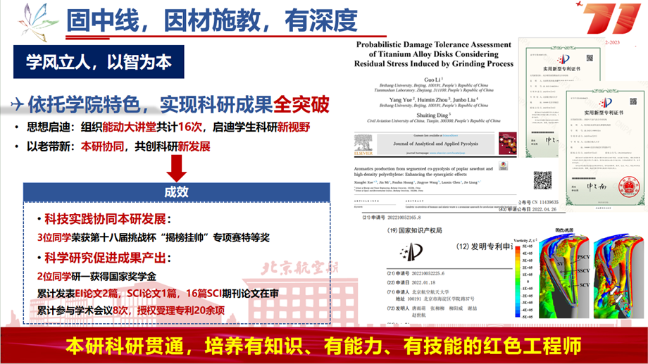五育并举成果显著,110余名推免同学均将在国家重点院校、航空航天相关院所深造学习,大班员工获得国家级、市级、校级奖项200余人次,各类奖学金280余人次。