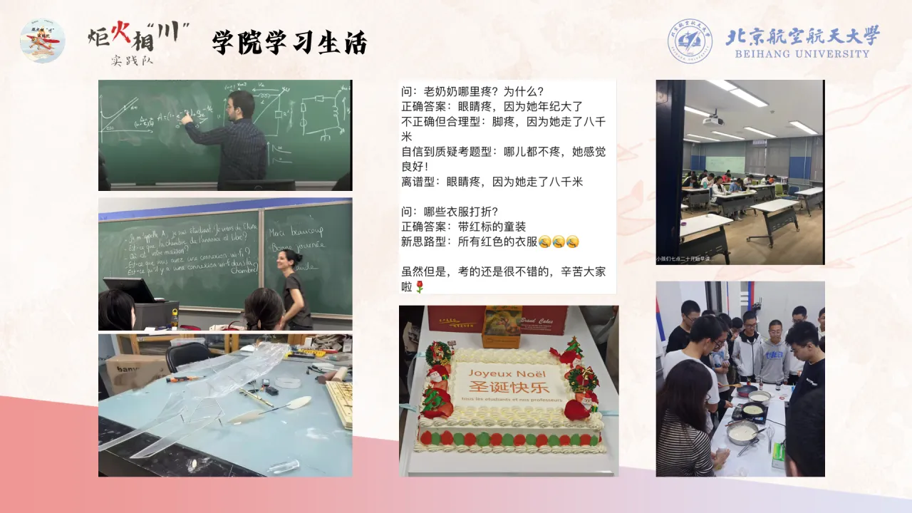 · 对于来自成都树德中学外国语校区的初中生,实践队聚焦学习态度,树立正确的学习观念并讲述北航生活和专业概览;