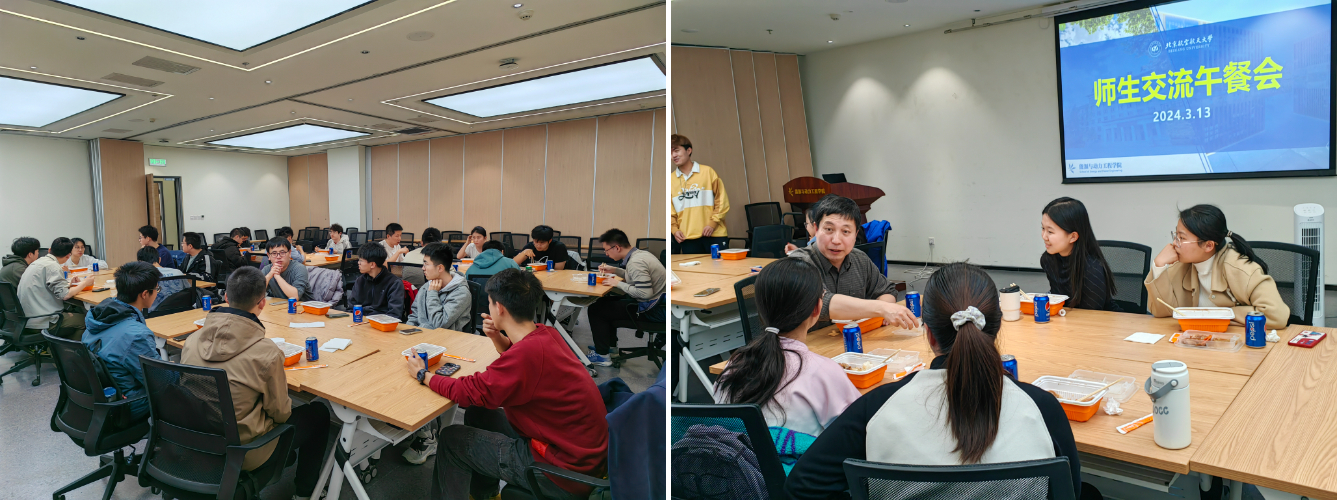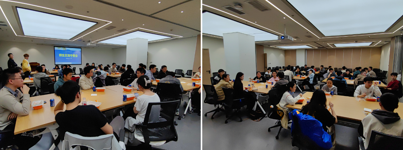午餐会上,老师向同学们介绍了公司发展历史、学科专业方向、行业趋势及未来就业前景等,对于同学们提出的关于专业培养方案、科创项目、研究方向等方面的提问进行详细解答。老师们还分享了个人成长经历、科研经历和教学心得,让同学们受益匪浅。现场氛围融洽,师生畅所欲言,同学们在轻松愉快的环境中加深了对公司的了解。