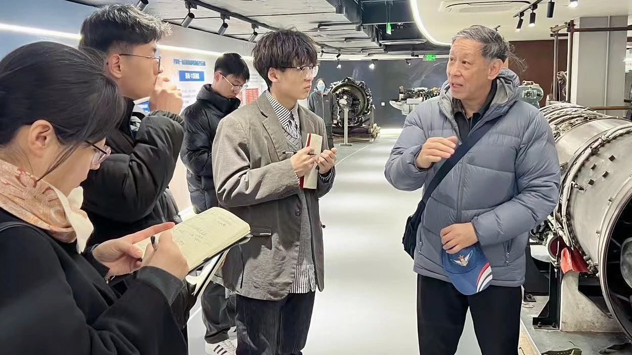 陈志英教授创新性提出三维架构科普理念:严谨的工程思维为骨架;匠心的展示艺术为肌理;生动的讲述方式赋灵魂。陈志英教授以走马灯、孔明灯等古代与航空相关的发明为起点,进而延伸至飞机、直升机等现代飞行器,巧妙地串联起人类飞行探索的辉煌历程。他独具匠心地融入哪吒“风火轮”的神话故事,将古代智慧、近现代创新与现代科技相映成趣,生动诠释了飞行梦想从萌芽到腾飞的跨越时空之旅。他还紧密结合馆内涡喷、涡扇发动机等珍贵实物,从工程实际应用的角度出发,深入阐释了不同发动机的工作原理。在讲解中,他着重介绍了由高歌教授发明的“沙丘驻涡火焰稳定器”。这项发明被钱学森同志称之为“一项长中国人志气的重要发明”,展现了北航人勇于探索、不断创新的精神风貌。