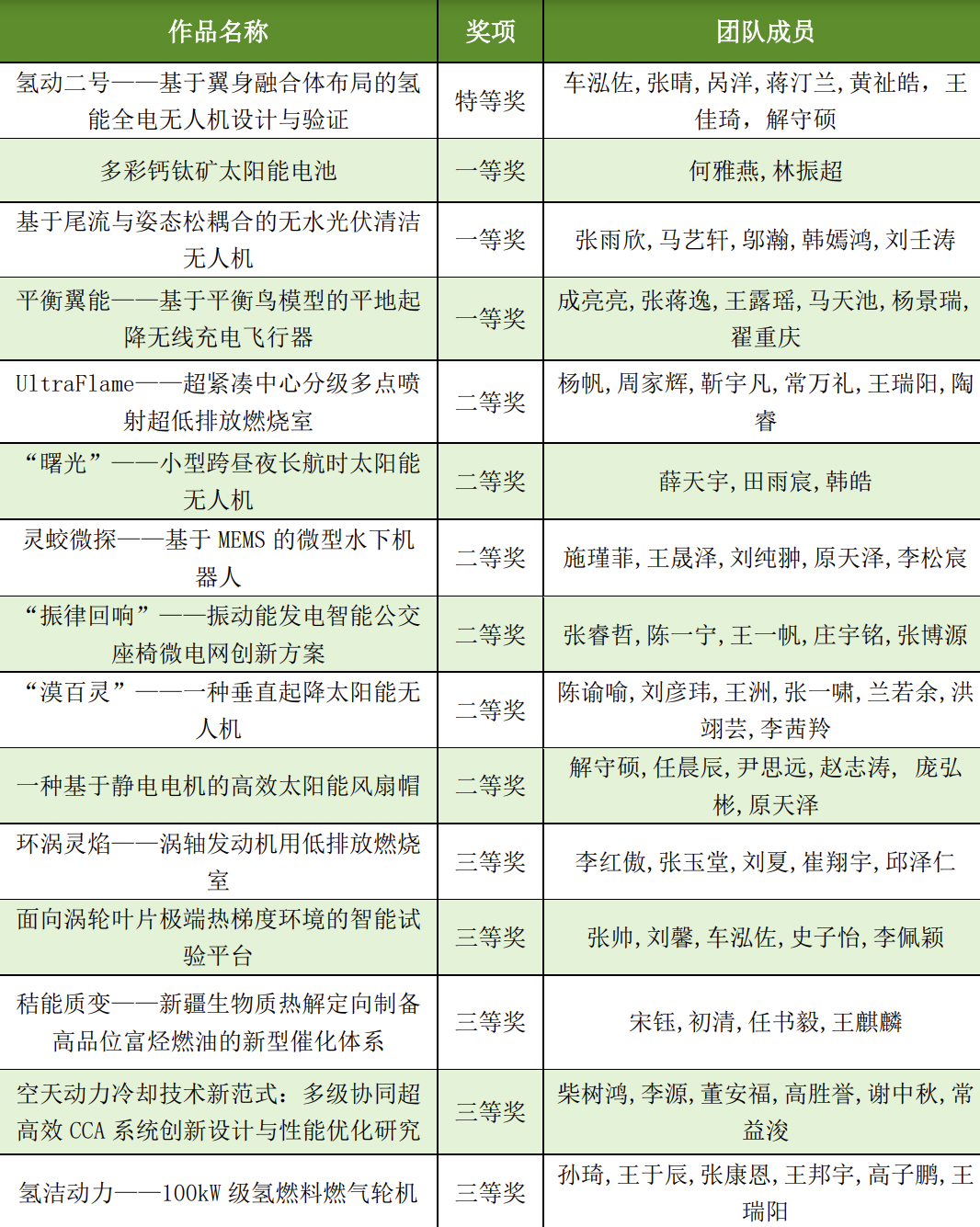 获奖名单