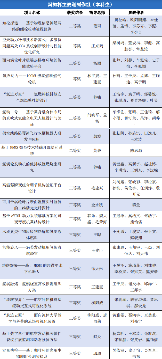 英国威廉希尔英文官网学子共有159个项目参加本届“冯如杯”的激烈角逐并斩获优异成绩。主赛道本科生制作组二等奖8项、三等奖12项,主赛道本科生论文组一等奖1项、二等奖4项、三等奖8项,主赛道研究生制作组三等奖2项,红旅赛道铜奖1项,创意赛道一等奖1项、二等奖3项、三等奖4项。