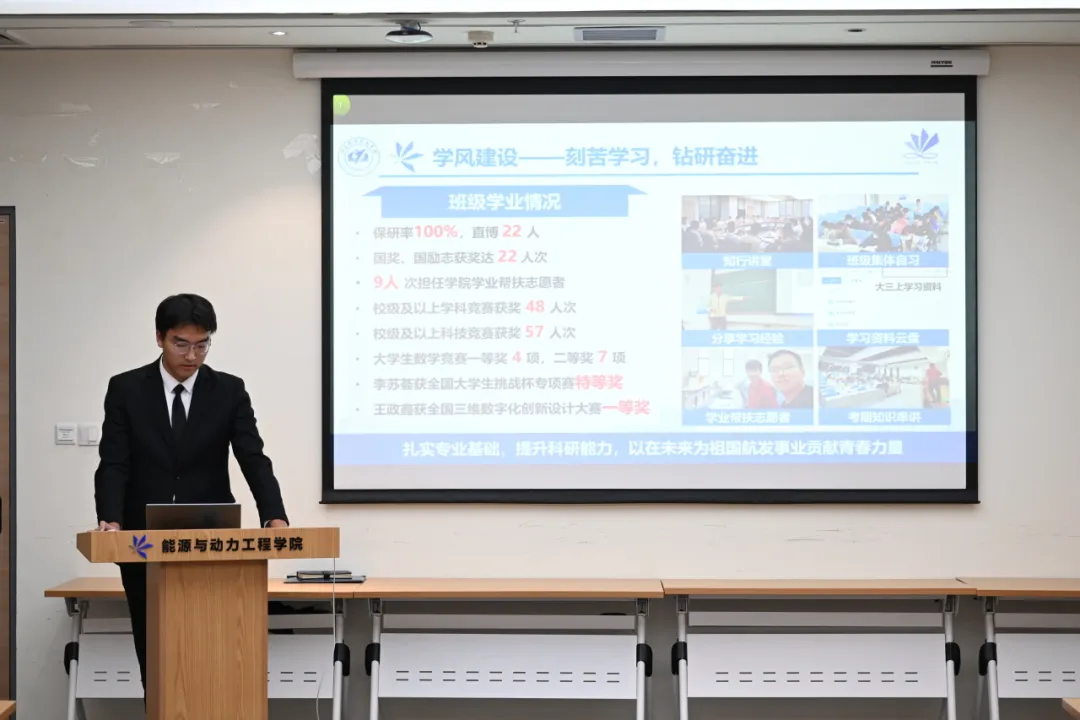 答辩会分为班级展示和现场提问两个环节。在班级展示环节,各答辩班级从班级基本情况、理论学习情况、班集体学风建设、队伍建设、文化建设、参与学科及科创竞赛、志愿实践活动等方面进行介绍,充分展现了班级特色和建设成果,展现了班集体凝聚力和良好精神风貌。答辩评委针对班级的特色活动、学风建设等方面进行提问,针对申报材料、答辩内容及班级未来建设提出建议。