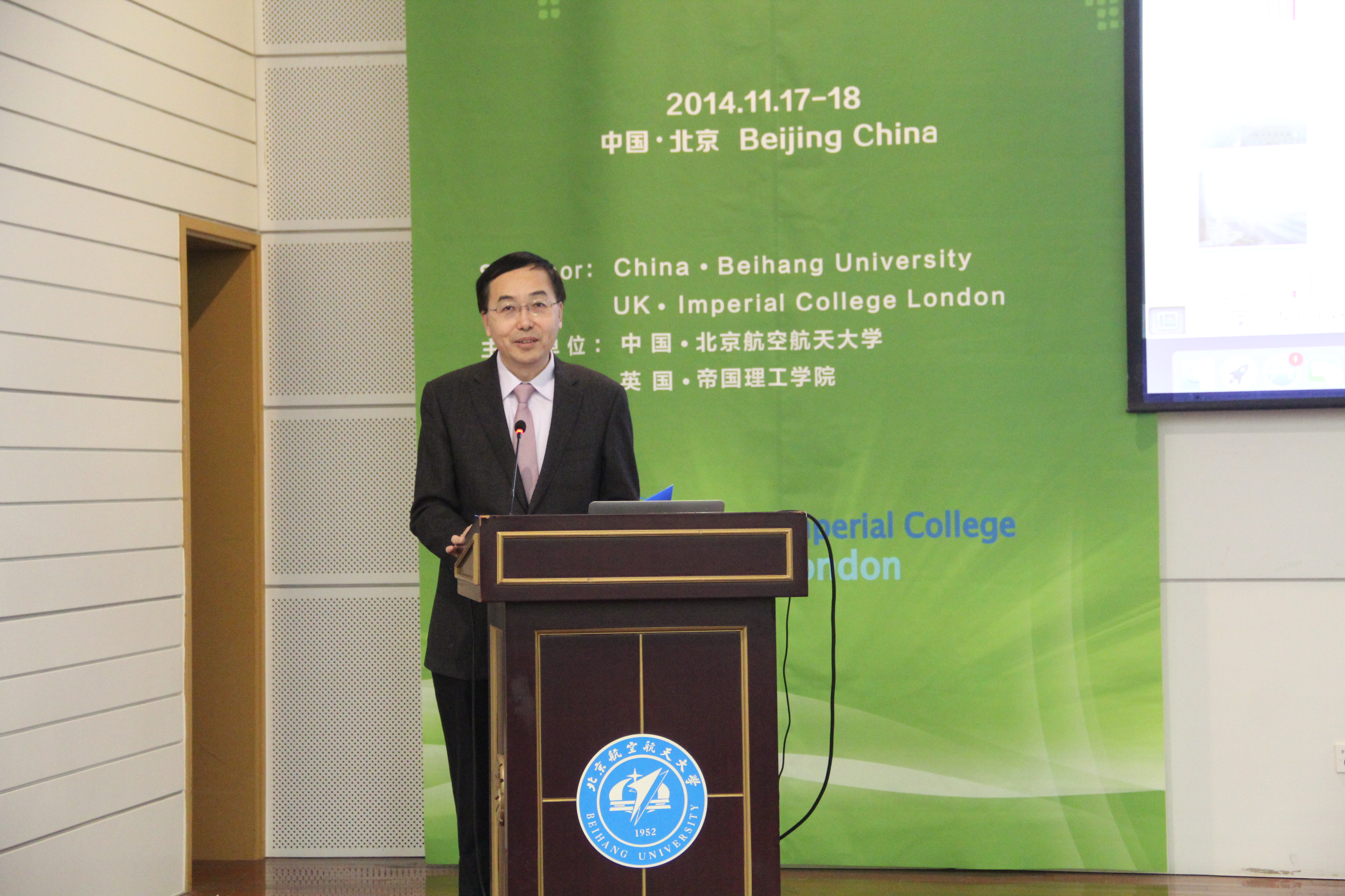 2014年11月18日由公司能源与环境国际中心发起并主办的“2014清洁能源与环境国际会议(2014 International Conference on Cleaner Energy and Environment)”在北航新主楼会议中心举行,会议设绿色航空、替代燃料、可再生能源和分布式能源四个主题。会议开幕式由英国威廉希尔英文官网经理丁水汀教授主持,公司国际交流合作处处长马进喜教授致开幕辞。美国工程院院士、美国加州理工公司Michael R. Hoffman教授、英国帝国理工公司Ferri Aliabadi教授、Spencer Sherwin教授等特邀专家出席会议并作大会报告。来自美国加州理工公司、英国帝国理工公司、中国浙江大学、中国西安交通大学以及公司多个院系的专家、学者参加了本次会议,并在大会主报告厅及分会场做了精彩的学术报告。