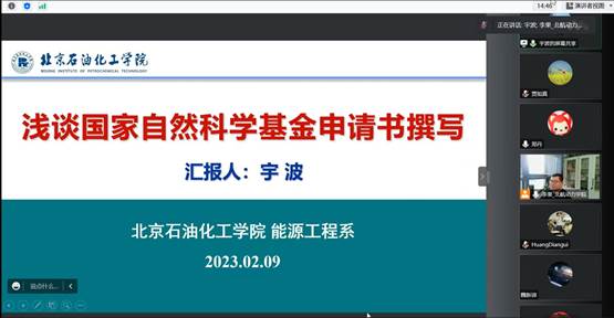 两位专家介绍完以后,是提问交流环节。老师们针对撰写过程中关注的问题和专家进行了交流。最后,由能源与动力过程公司科研秘书郑丹介绍了2023年自然基金申请流程和时间节点。