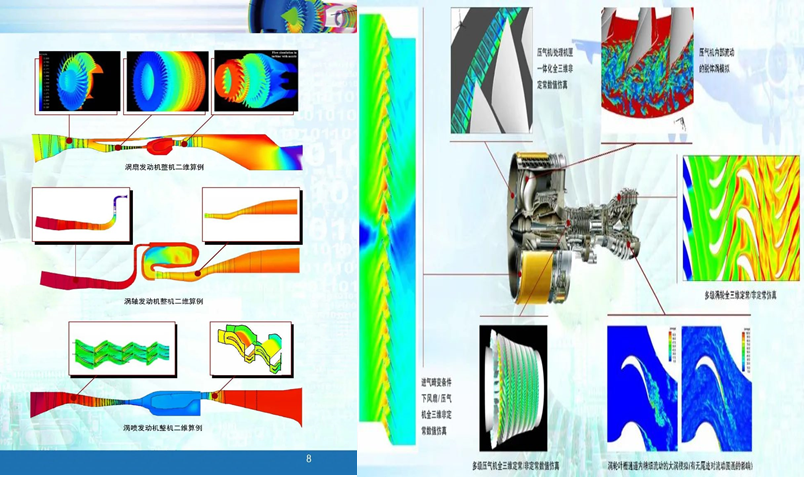 在叶轮机气动和声学仿真方面,进行风扇、压气机、涡轮非定常气动仿真,民用发动机和超声速喷流气动声学高精度数值仿真;在燃烧仿真方面,对发动机主燃烧室过渡过程进行数值仿真,模拟过渡过程中燃烧室内的各参数的变化,从而为主燃烧室的设计提供参考;在结构强度仿真方面,进行颤振及鸟撞发动机仿真,并开展结构优化,这些工作以航空发动机实际结构作为对象,通过仿真分析明确失效过程及机理,改进设计,为提高发动机结构的安全性和可靠性提供依据。
