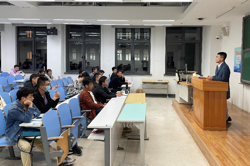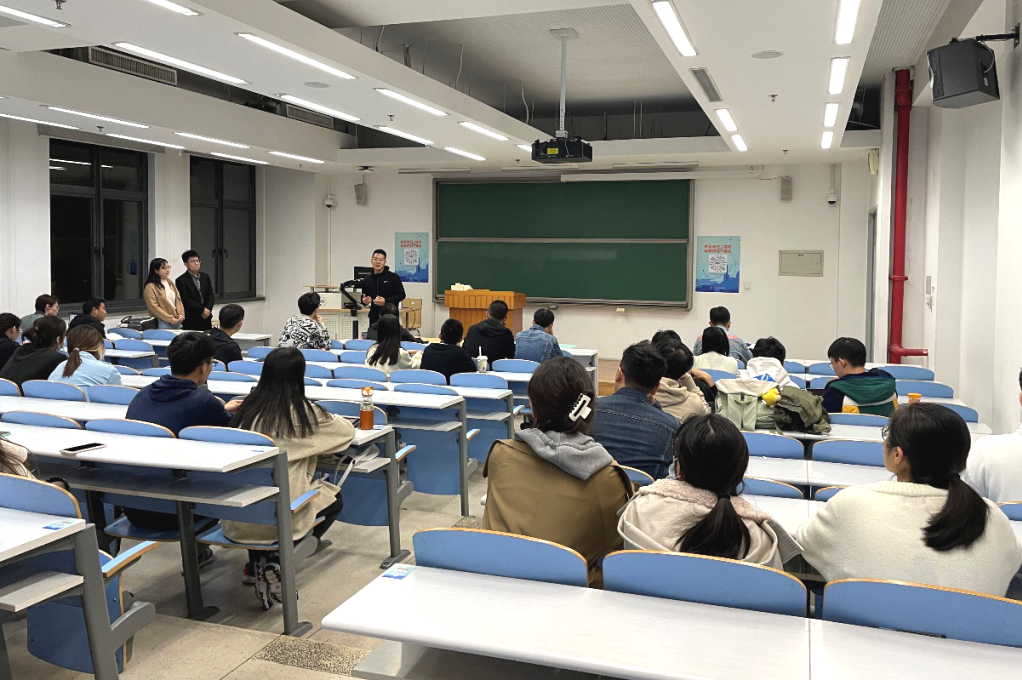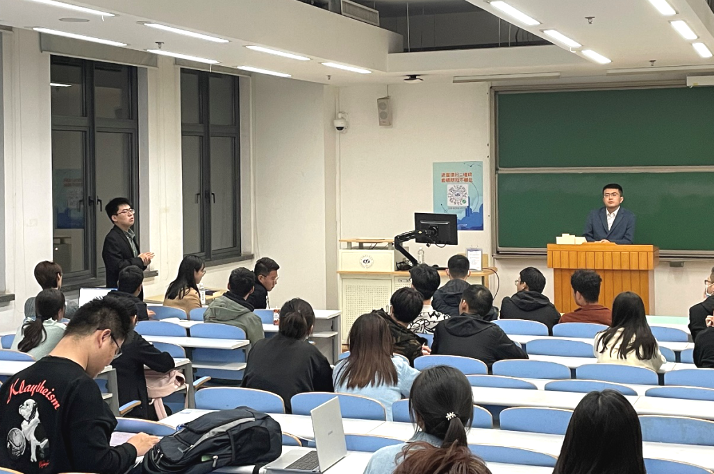 10月13日晚,英国威廉希尔英文官网研究生本学期首次就业经验分享会如约在J4-206进行。本次活动邀请到刘鸿志、张皓天两位优秀员工作为嘉宾,主要就专业内就业选择、选调生备考经验、职位选择等话题以自身经验为基础进行了分享。分享会由花志伟主持。